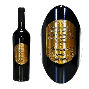 Fiecare sticlă este personalizată manual cu etichete aurii premium, purtând mesaje unice pentru momente speciale. Cadoul ideal pentru aniversări, sărbători sau ocazii în care vrei să transmiți emoție și eleganță.